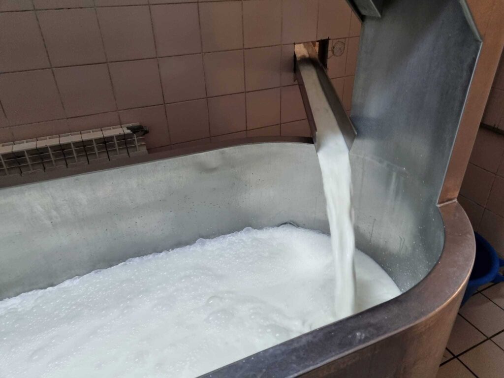 Tout commence à la ferme, avec le lait cru et entier de nos brebis Manex Tête Noire. Ce lait riche et parfumé part directement à la cuve pour être transformé sur place. C’est le début d’un savoir-faire transmis depuis plusieurs générations, dans le respect de la tradition basque et du cahier des charges AOP Ossau-Iraty.